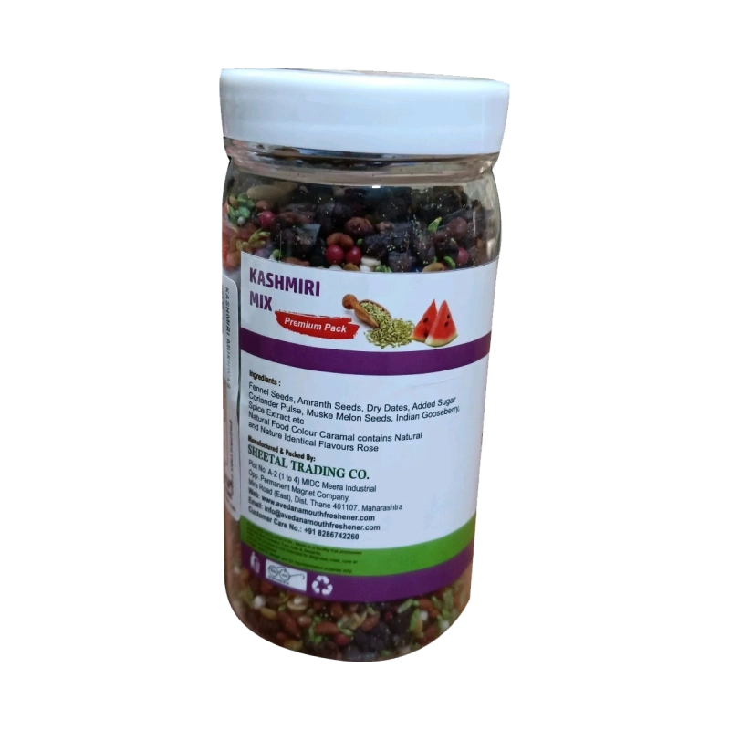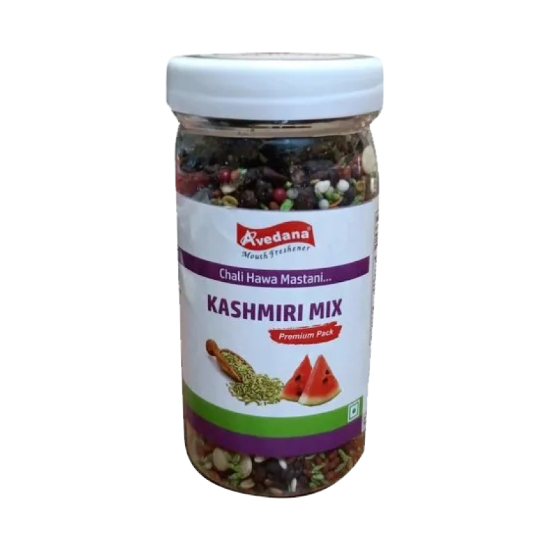 Experience the unique and exotic flavors of Avedana Kashmiri Mix Mukhwas, a premium blend of sweet and fragrant ingredients inspired by the rich traditions of Kashmir. This refreshing mouth freshener combines fennel seeds, rose petals, sugar-coated seeds, and other aromatic herbs to deliver a burst of freshness with every bite. Perfect for cleansing the palate after a meal or as a quick snack to refresh your breath, this Kashmiri mix offers both taste and digestive benefits, bringing a touch of Kashmir’s timeless essence to your day.
