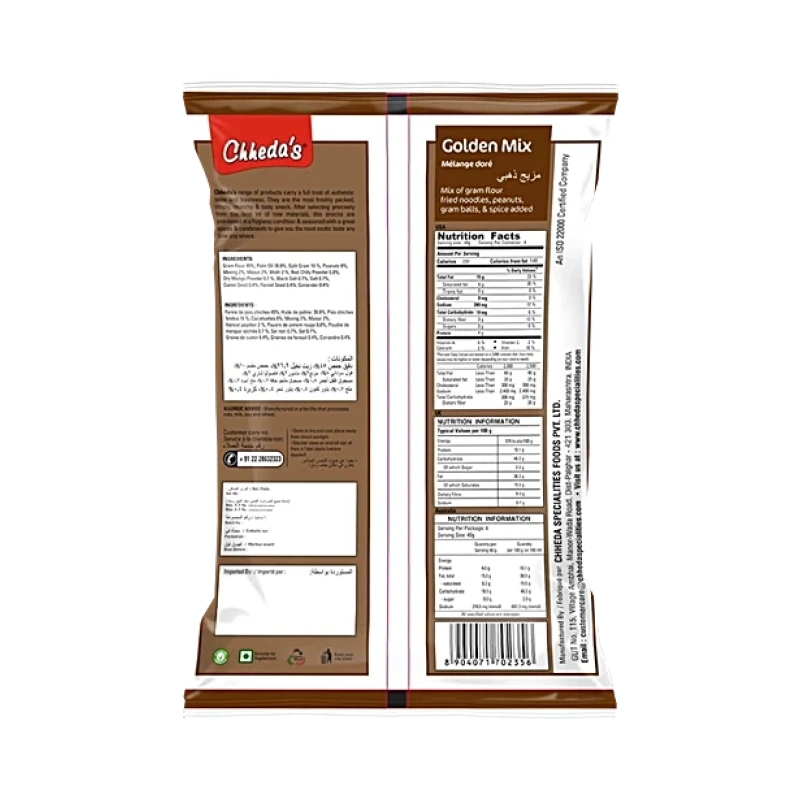 Enjoy the rich and savory flavors of Chheda’s Golden Mix, a delightful snack that combines a variety of crunchy ingredients for a truly satisfying experience. This premium mix features an assortment of fried lentils, peanuts, and spices, all perfectly blended to create a snack that’s both delicious and nutritious. The golden hue and crispy texture make it an enticing treat for any occasion, whether youโ€™re enjoying a quiet evening at home or hosting a party. Chheda’s Golden Mix is the perfect companion for your favorite beverages or as a standalone snack that will keep you coming back for more!