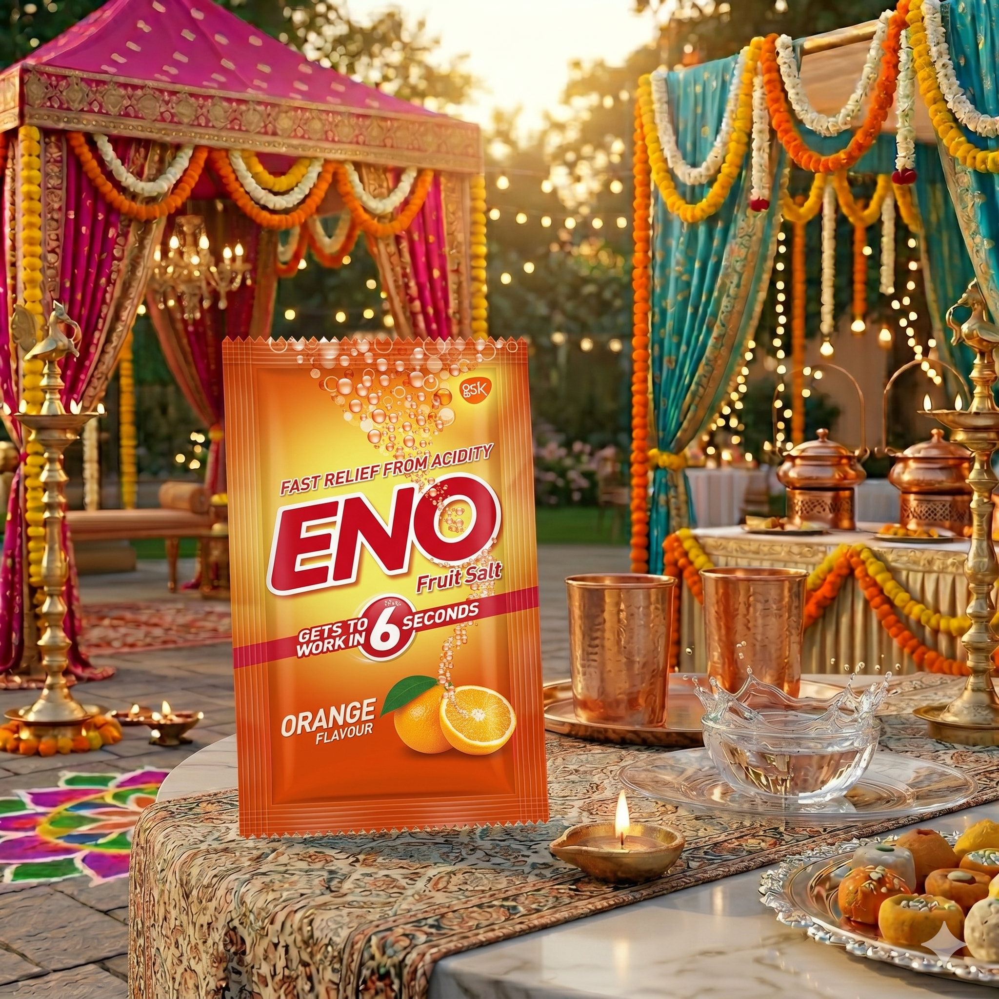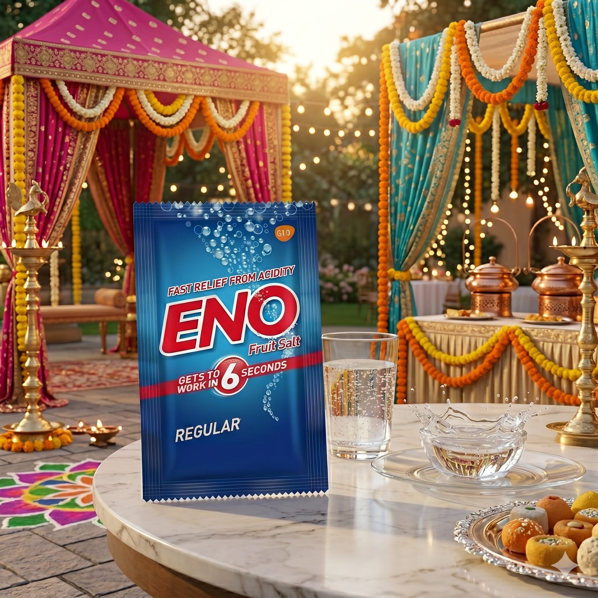 ENO Fruit Salt contains Svarjiksara (Shudh) and Nimbukamlam (Shushkam), which neutralises stomach acid on contact. ENO Fruit Salt gets to work faster than leading liquid and tablet antacids. In fact, ENO gets to work in just 6 seconds. Make life better and live in the moment with ENO. ENO exists to champion your appetite for life — through speed, efficacy, credibility, and expertise.