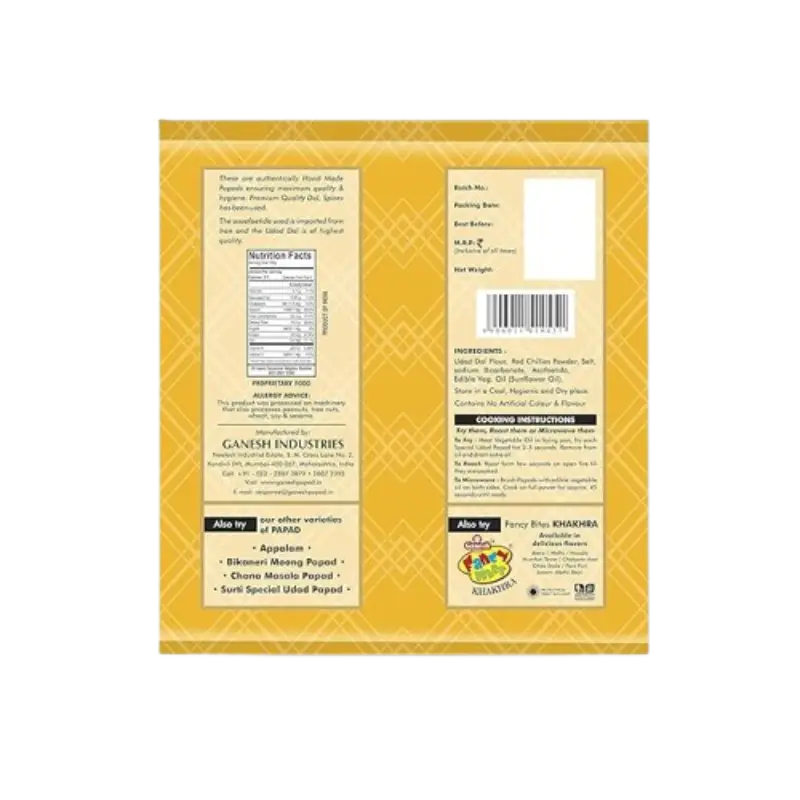 Spice up your meals with Ganesh Red Chilli Papad, a fiery Indian delicacy made from the finest lentils and infused with the bold heat of red chilies. Crafted using traditional methods, these papads bring a perfect balance of crispiness and robust flavor to your dining experience. Whether roasted, fried, or microwaved, they’re a must-have accompaniment to any Indian meal or a standalone spicy snack.