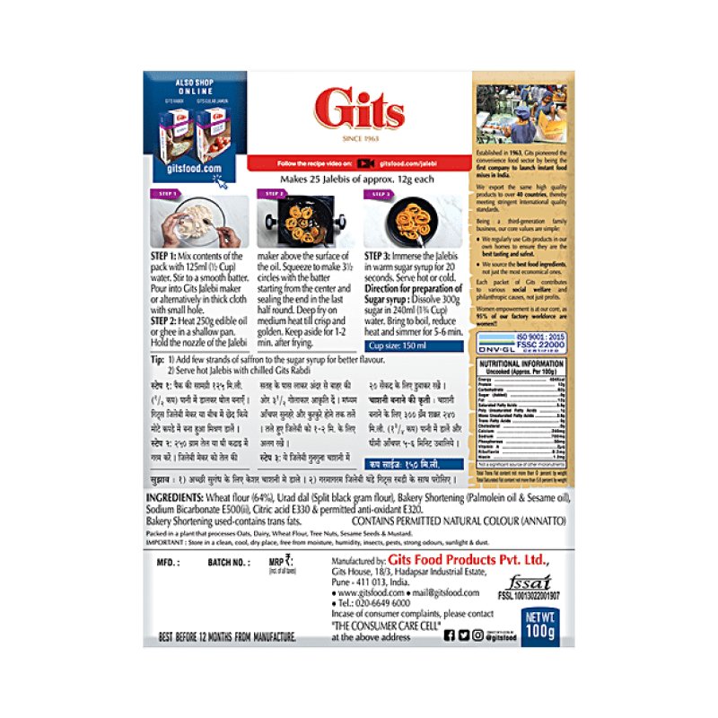 The cooking process is made simple with a single mix that can be used to prepare the batter for your Jalebis. Jalebis are usually served along with a generous portion of flavoured and condensed milk – chilled Gits Rabdi, and the combo tastes like heaven. Gits dessert ready mixes are made using the finest ingredients, and with the suggested recipes, you can make fantastic homemade Indian sweets.