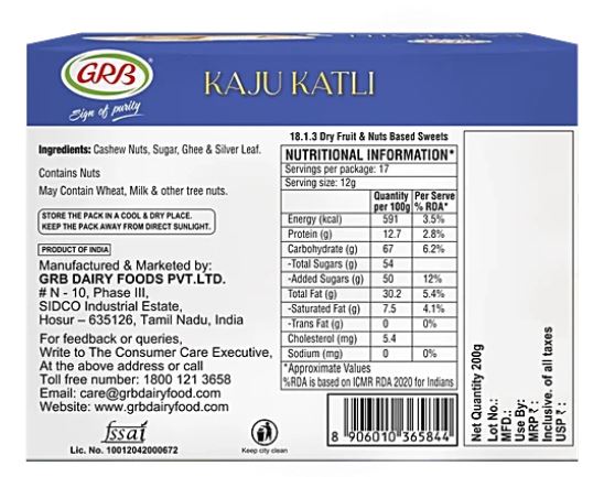 Be the first to review “GRB Kaju Katli 200 g” Cancel reply