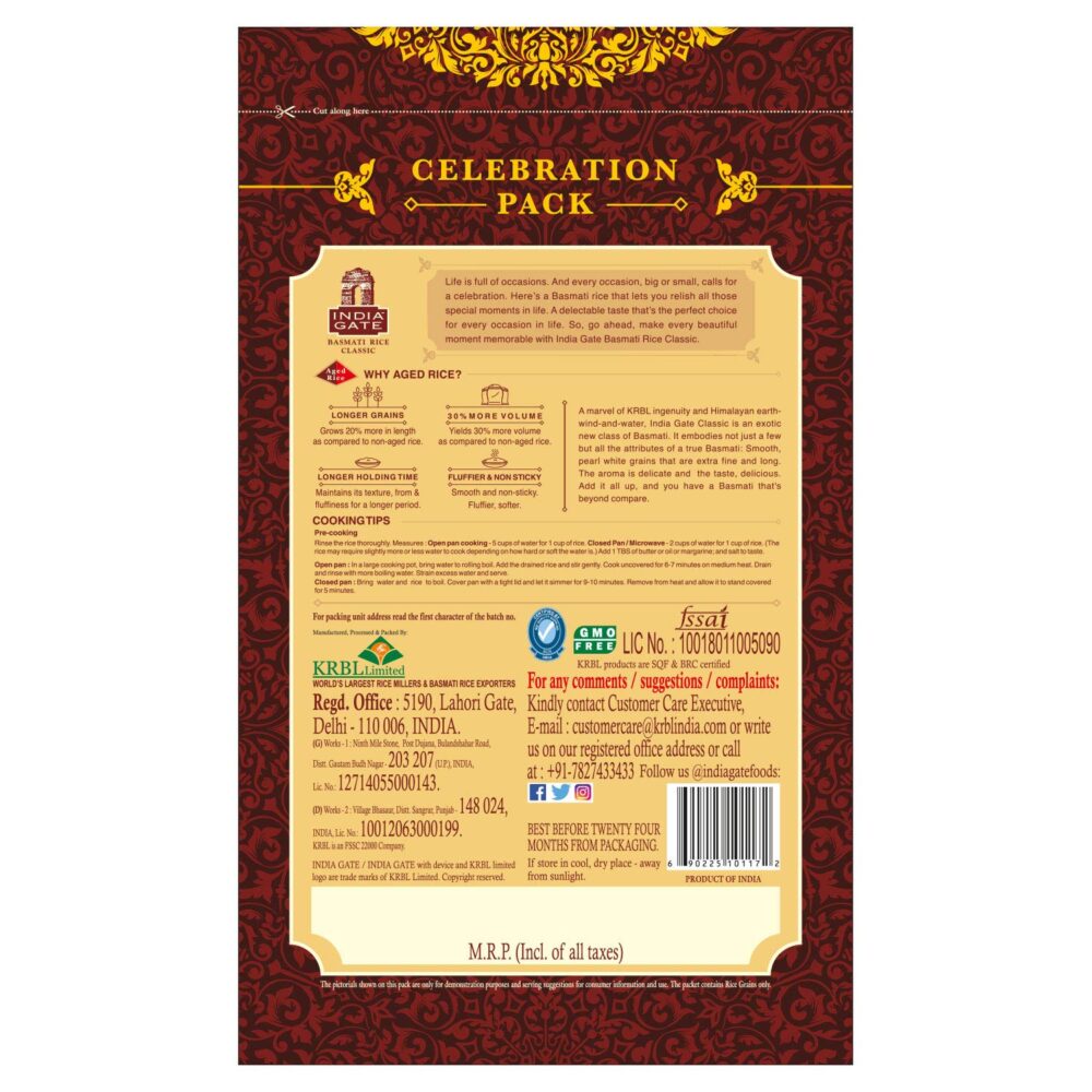 India Gate Classic Basmati Rice is an exotic variety of Basmati rice with a delicious flavour that allows you to relish special occasions and celebration in life. With the delicious taste of India Gate Classic Rice, you will dazzle your family and friends and make every celebration greater.