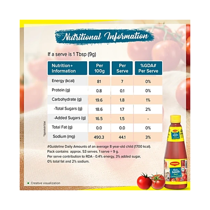 The MAGGI Tomato Sauce No Onion No Garlic is specially crafted for those who avoid onion and garlic in their diet. Despite lacking these ingredients, it offers a rich and tangy tomato flavor, perfect for enhancing snacks like samosas, noodles, fries, and sandwiches. Its key ingredients include water, tomato paste (around 24.9%), sugar, salt, and mixed spices. It comes in various sizes and has a shelf life of 12 months, making it a great pantry staple for vegetarian householdsβ.