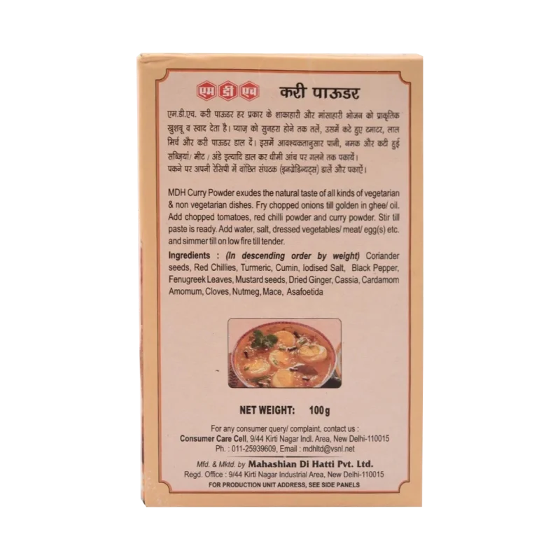 MDH Curry Powder is a premium blend of spices that brings the authentic, rich flavor of traditional curries to your kitchen. Whether you are preparing vegetarian or non-vegetarian curries, this curry powder helps you create dishes full of depth and complexity. With its aromatic blend of spices, MDH Curry Powder is ideal for adding a balanced, savory flavor to a wide range of curry recipes.