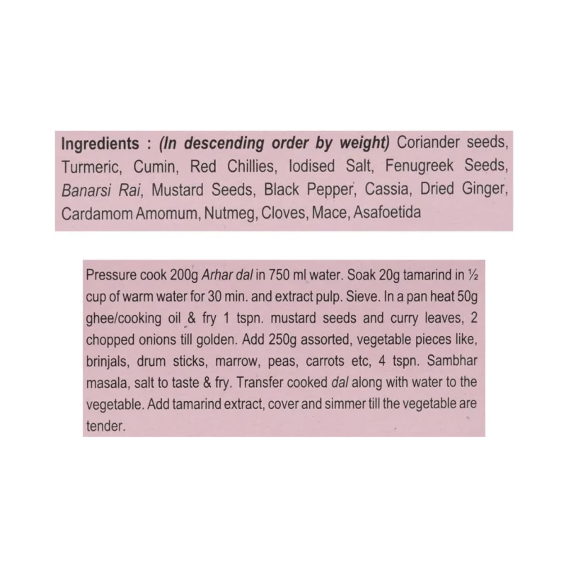 Bring the traditional flavors of South India to your kitchen with MDH Sambhar Masala. This aromatic spice blend is specially curated to make delicious sambhar, a quintessential South Indian lentil curry. Made from high-quality spices, it adds the perfect balance of flavor and aroma to your sambhar, making it a delightful accompaniment to idli, dosa, rice, or vada.