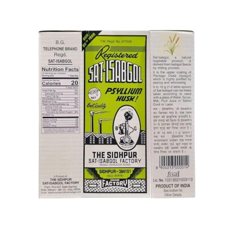 Sat Isabgol, also known as psyllium husk, is a natural dietary fiber that promotes digestive health and overall well-being. Extracted from the seeds of the Plantago ovata plant, this pure and natural fiber supplement is widely used to support regular bowel movements, aid in weight management, and maintain a healthy gut.