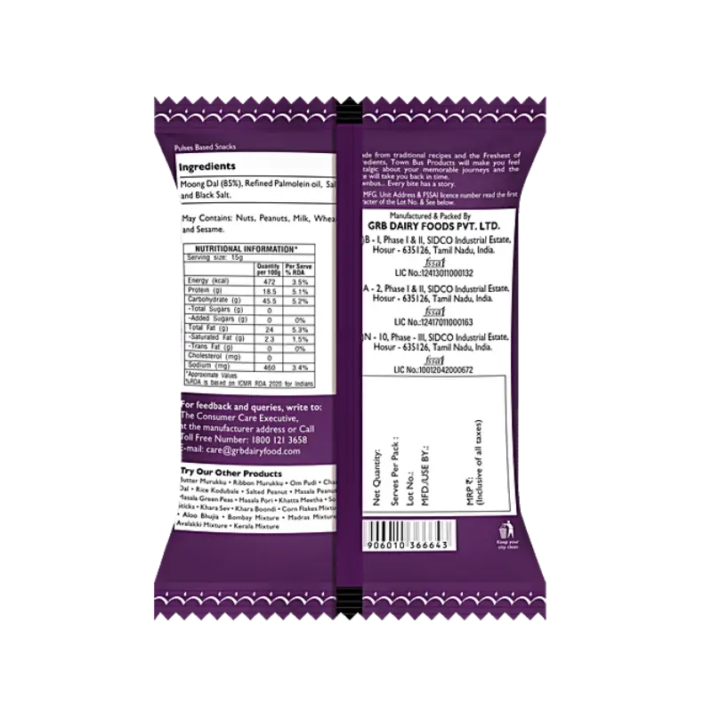 Relish the crunchy goodness of Town Bus Moong Dal, a classic Indian snack made from premium-quality split green gram. Lightly seasoned and fried to golden perfection, this snack is perfect for satisfying your cravings anytime, anywhere. Whether you’re at work, relaxing at home, or on the go, Town Bus Moong Dal makes every moment more delicious!